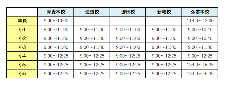 ※テストはマークシート形式(年長・小1・2は記述式)ですので、シャープペンシルは不可といたします。