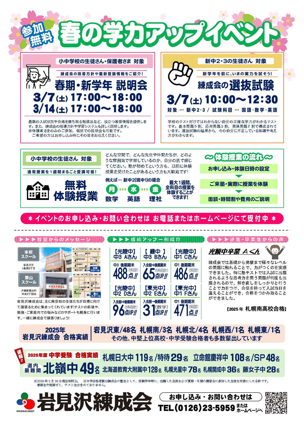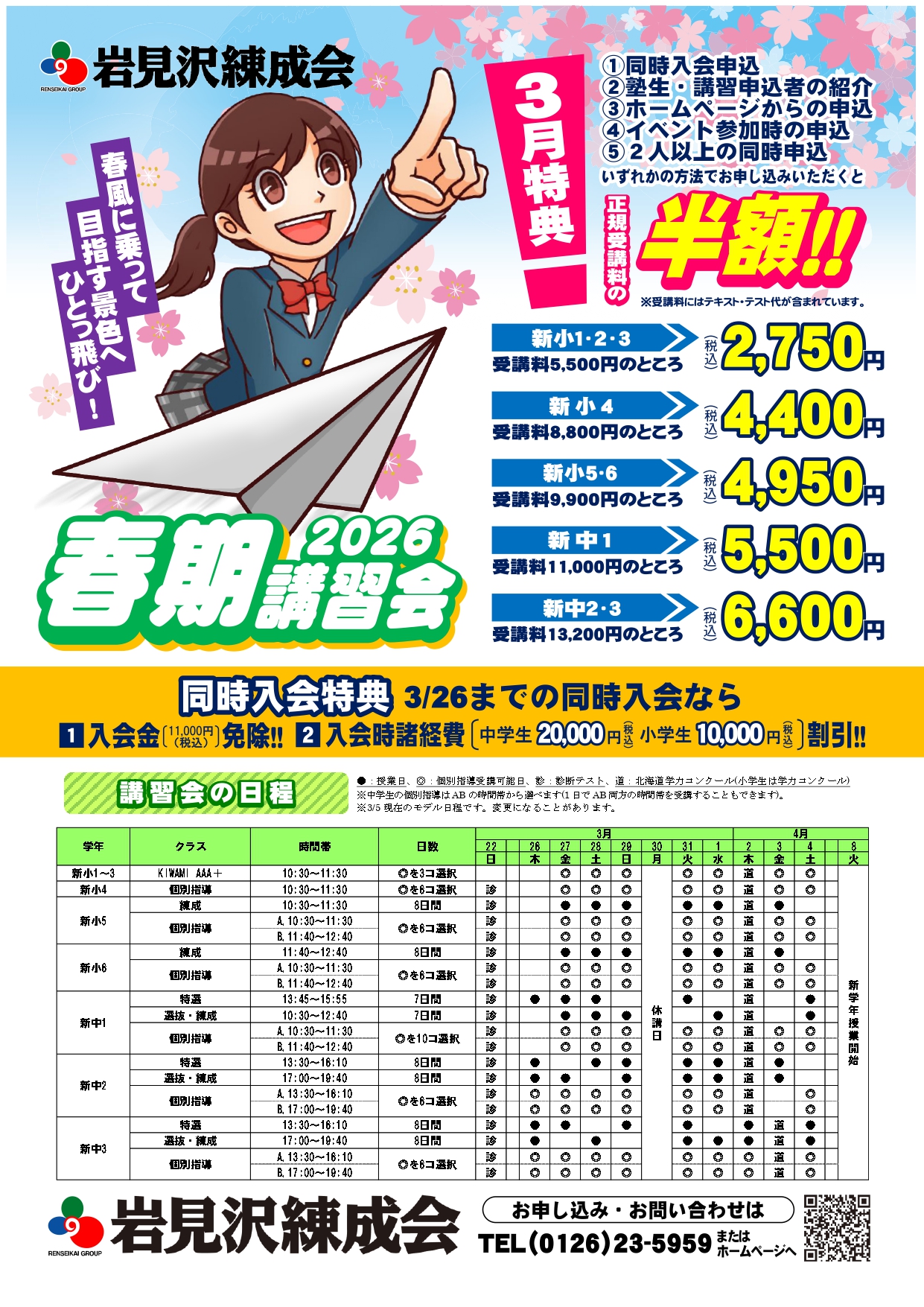 3月も 春期講習会 受付中!(3月申込特典もあります)