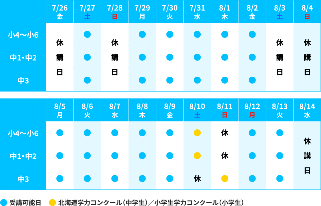 ※3 北海道学力コンクール/小学生学力コンクールの受験料です。講習会指導の一環として受験必須となります。