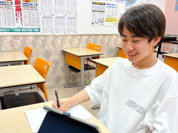 練成会に通う中学3年生、佐々木鳳さんは、入塾前、オンラインでのタブレット学習に取り組んでいました。しかし、中学1年生で迎えた初めての定期テストで、思わぬ結果に直面します。