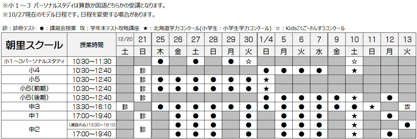 【小1~中3】冬期講習会受付スタート!(朝里スクール)