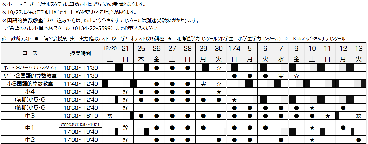 【小1~中3】冬期講習会受付スタート!(本校スクール)