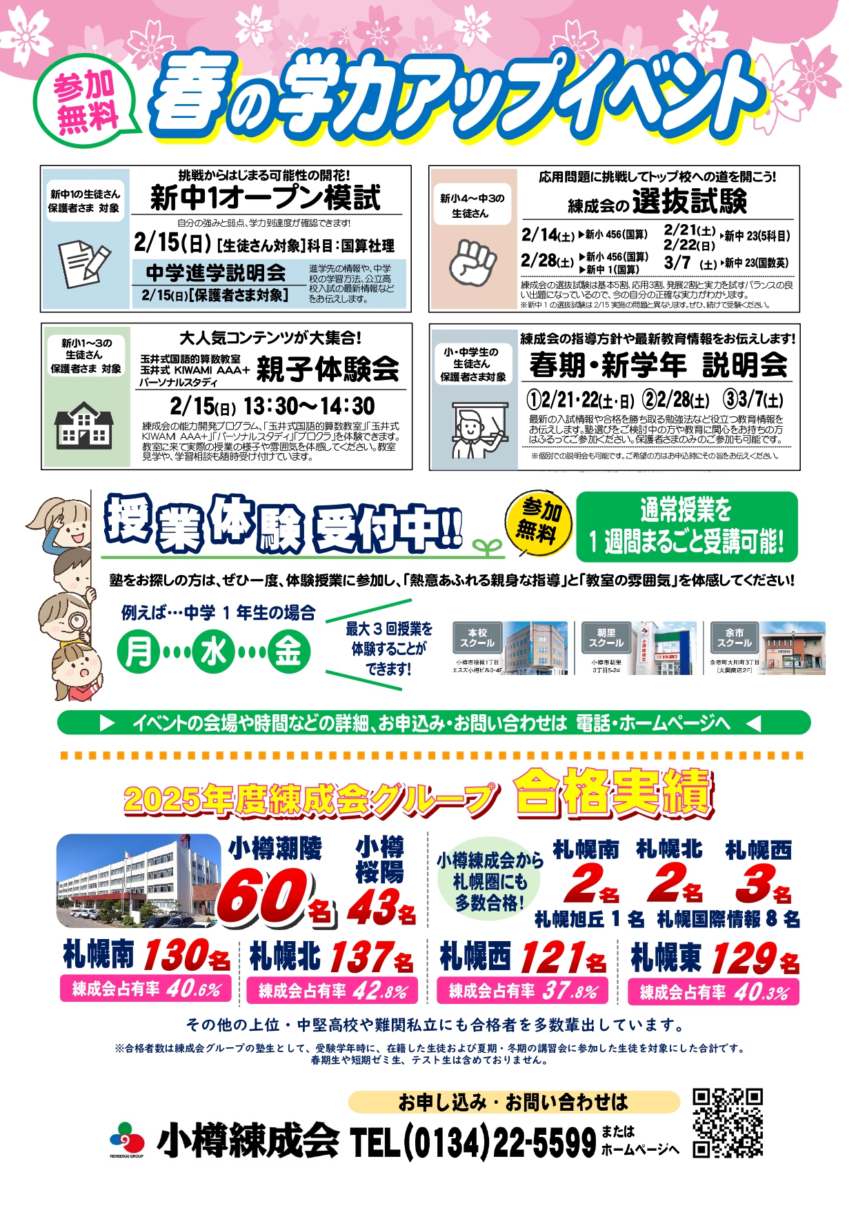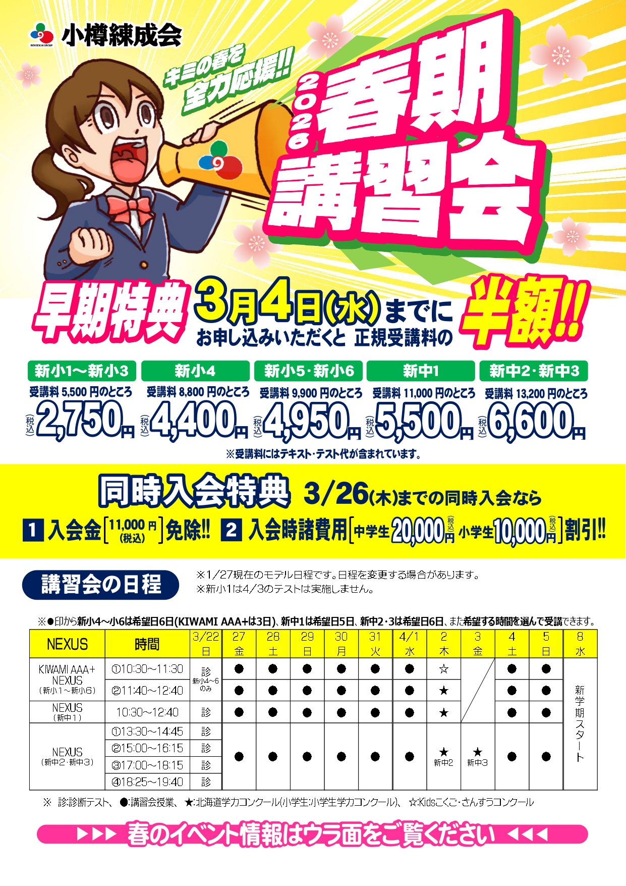 小樽練成会 NEXUS本校スクールからのお知らせ