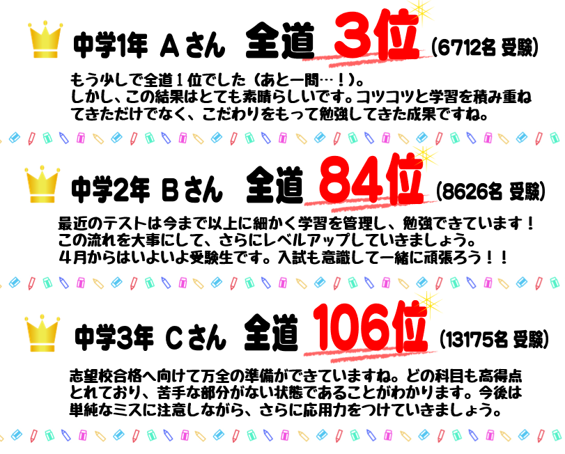 さて、今回は後志地区の北海道学力コンクールの塾生、講習会生の頑張りを、一部ご紹介します。