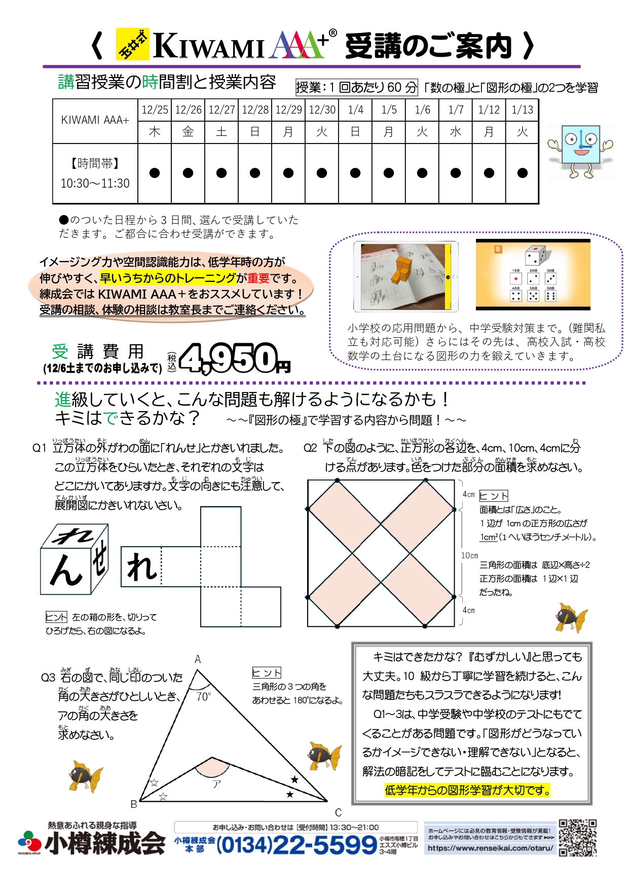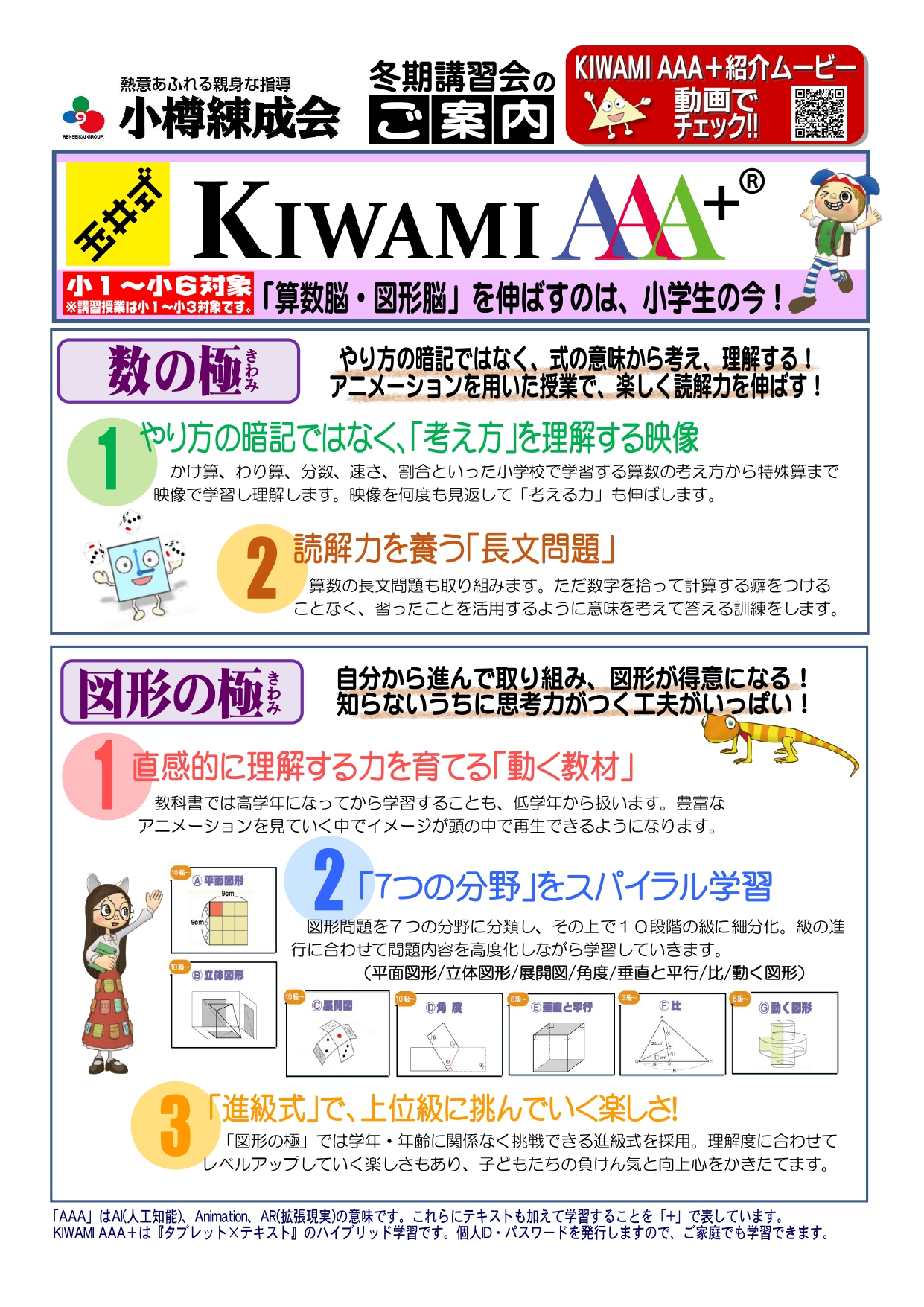 【小1~3】KIWAMI AAA+冬期講習会のご案内