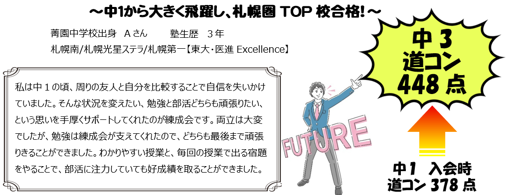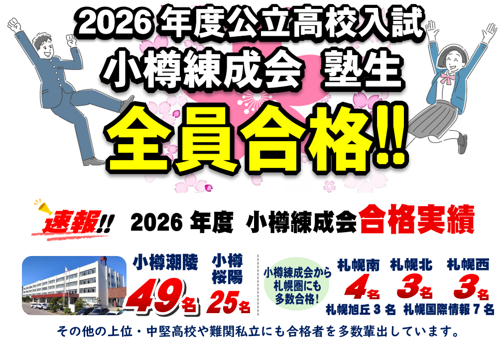 今回は、見事に合格を勝ち取った小樽練成会の生徒から3人をご紹介します。