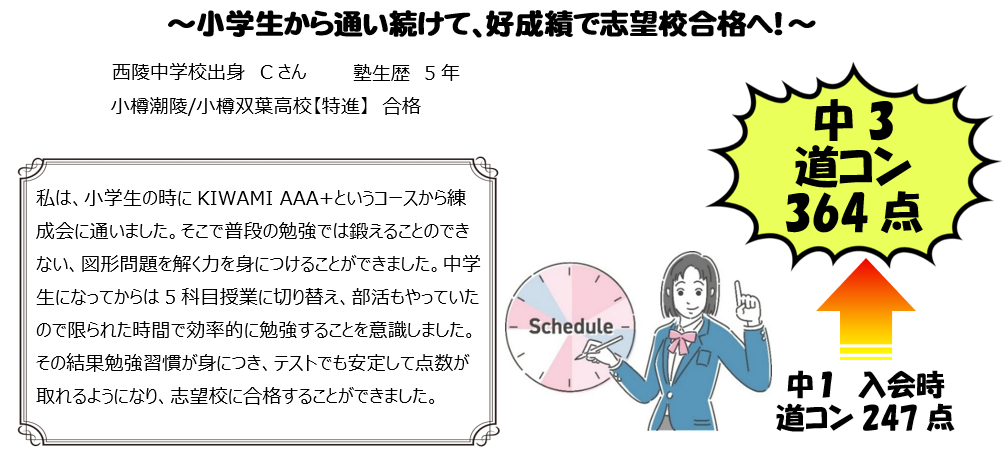 生徒一人ひとりの状況は違いますが、練成会で頑張ることで目標を達成できました!