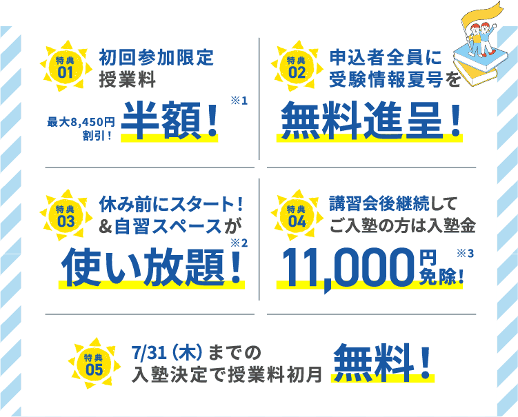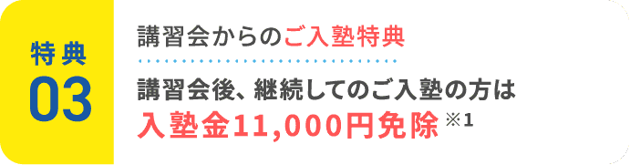- ※3 8月末までにご入塾の方は、入塾金11,000円免除。