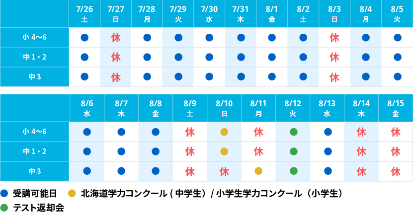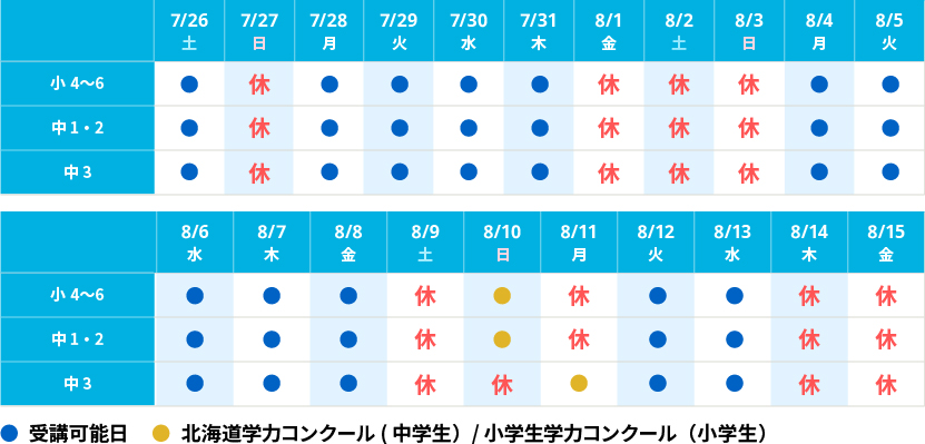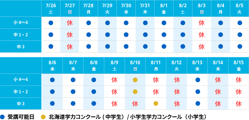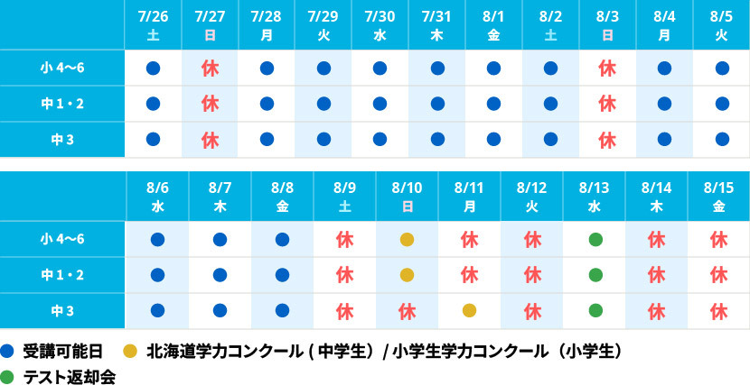 - ※受講目安:【中2以下】2コマ/日、【中3】3コマ/日