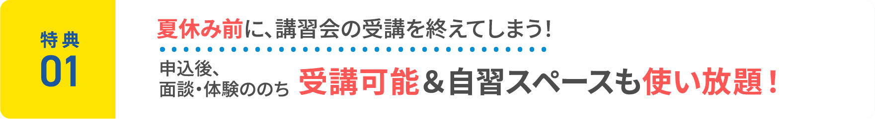 - ※2 申込後、面談・体験のち夏休みを待たずに受講可能です。