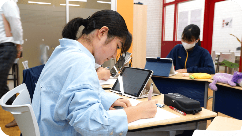 生徒が自由に未来を考えられるよう、職業選択にとらわれずに、いろんな角度から対話をします。