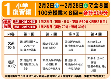 2月中は、主要5科目(国・算・社・理・英)をていねいに復習。