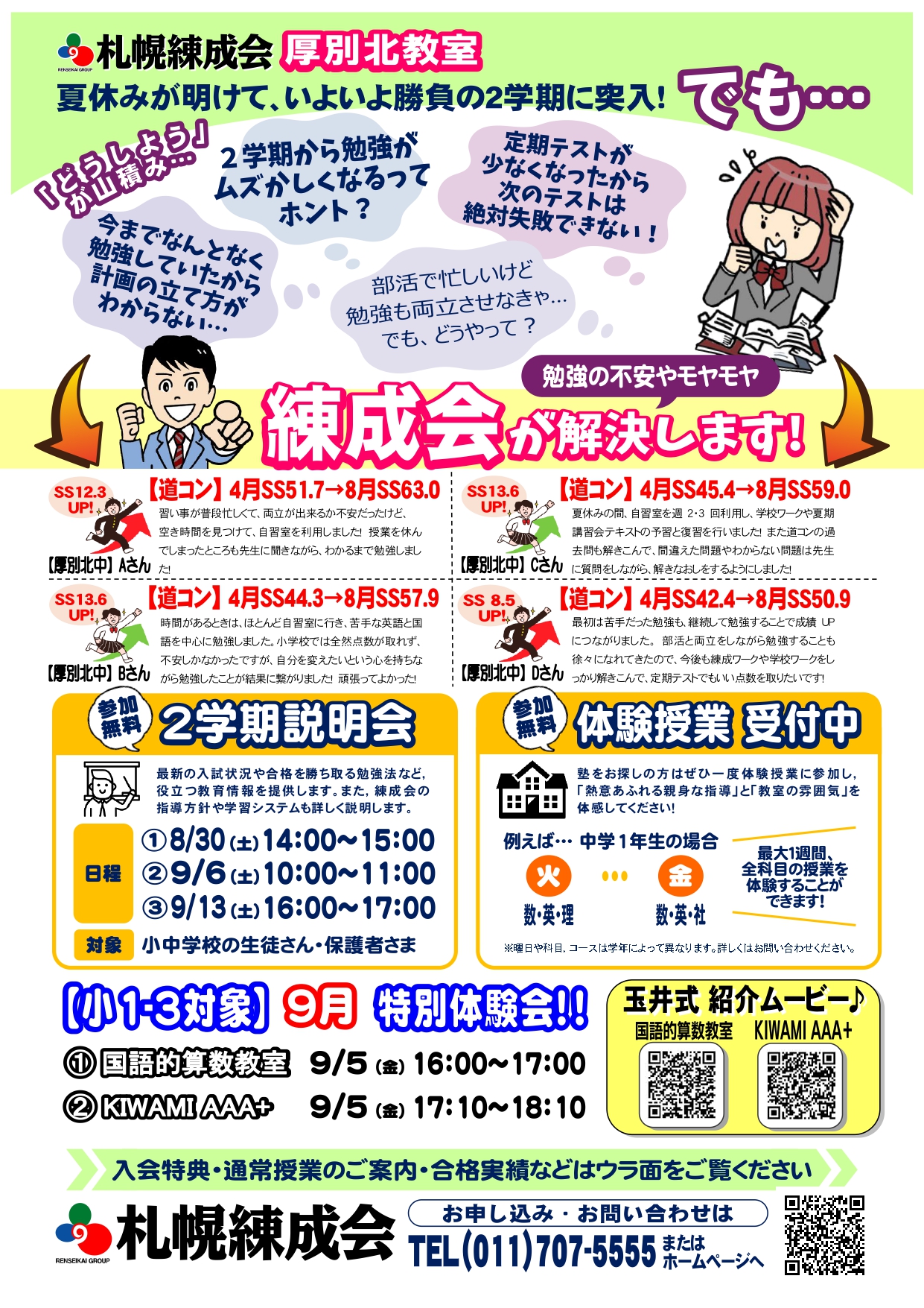 「勝負の2学期」がスタートしました!入会生・体験生受付中!(厚別北教室)
