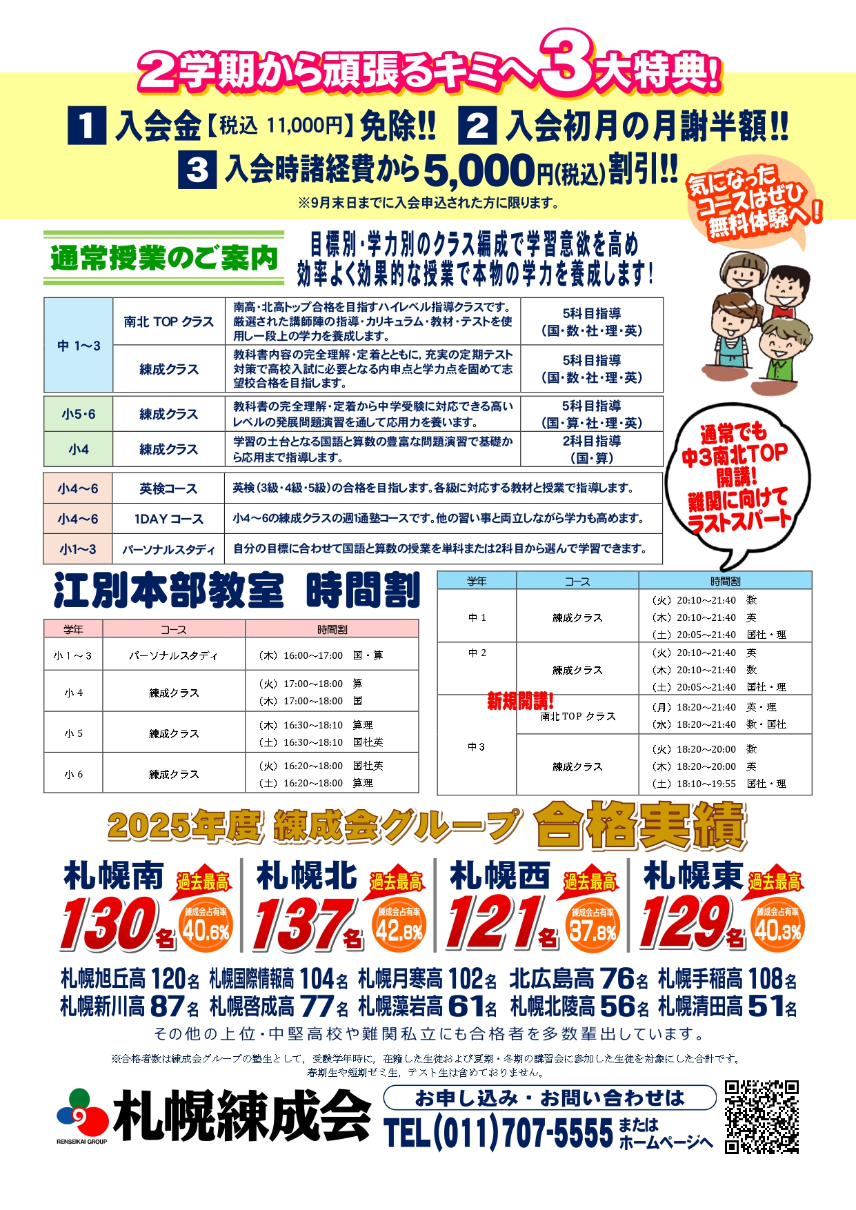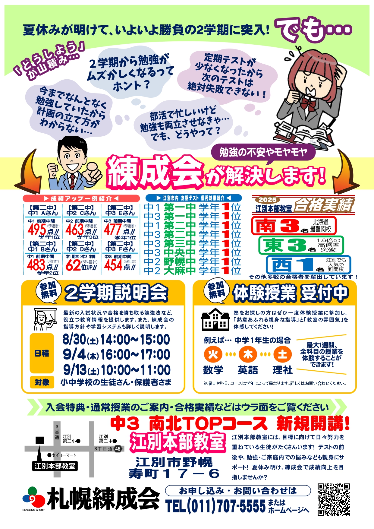 「勝負の2学期」がスタートしました!入会生・体験生受付中!(江別本部教室)