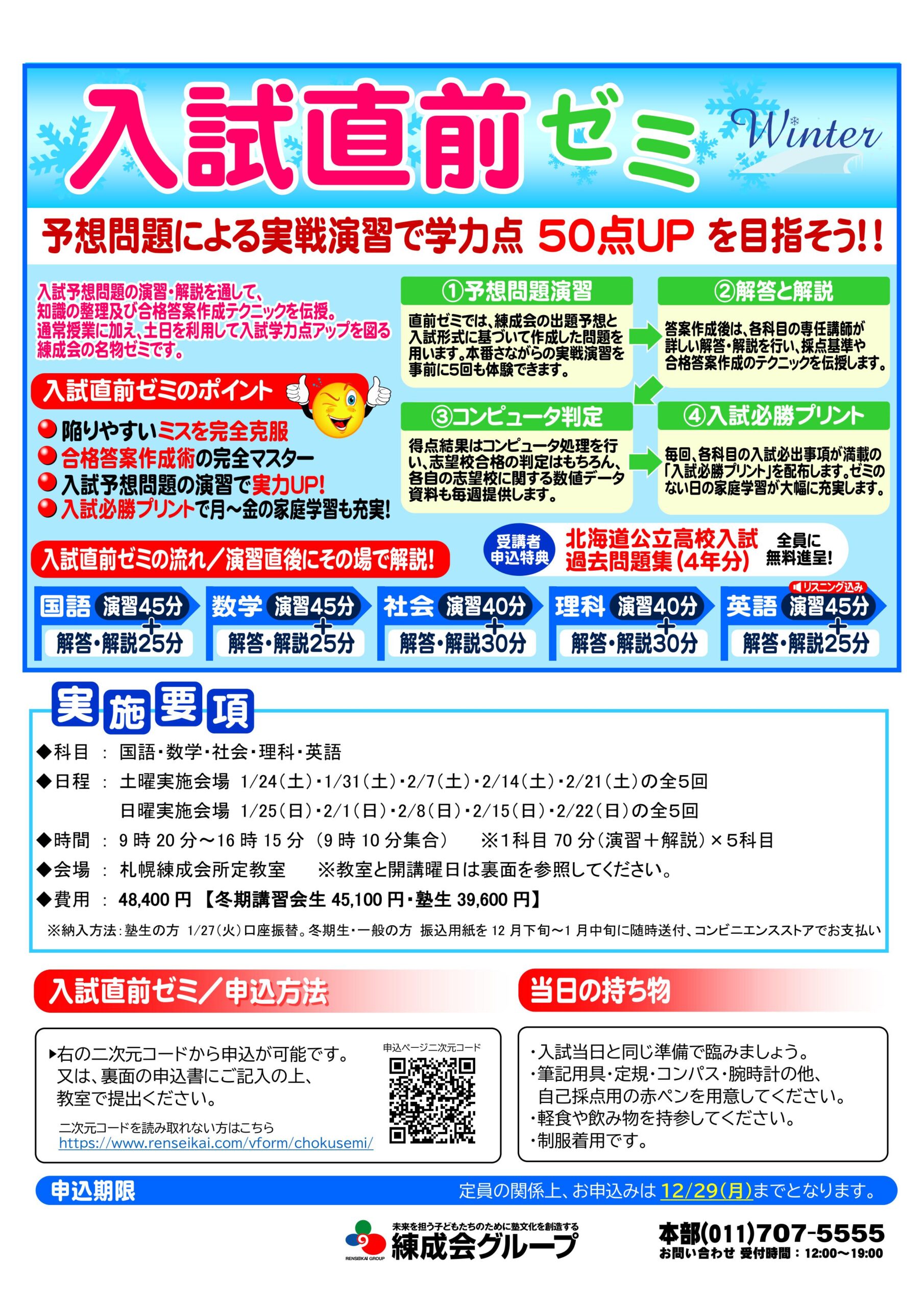 この冬、練成会で合格へのラストスパートを決めませんか?
