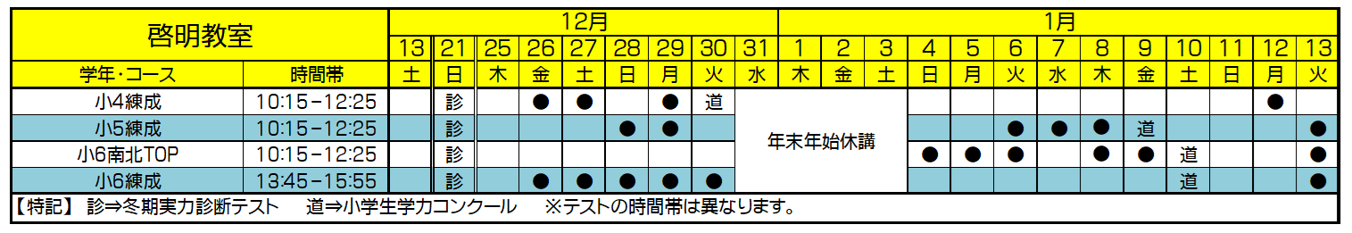 例年、スキー教室や帰省などで一部日程が合わないという方がいらっしゃいます。