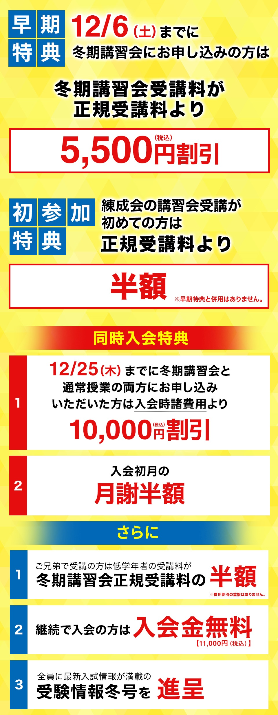 今冬の冬期講習会にて皆さまとお会いできるのを楽しみにしております。