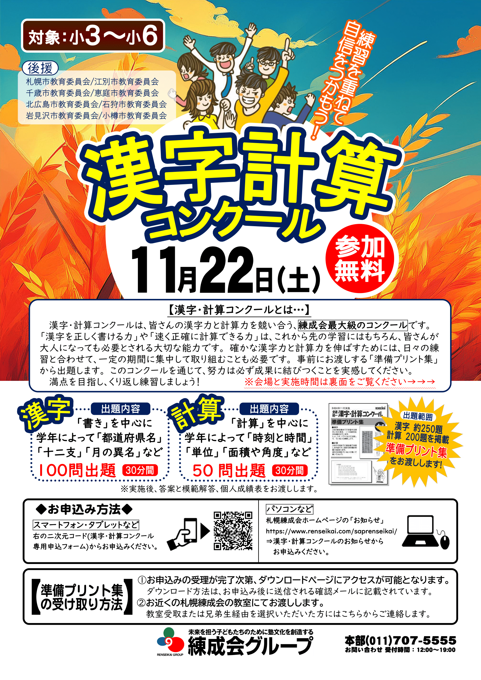 札幌練成会 | 漢字計算コンクールのお申し込み | 練成会グループ