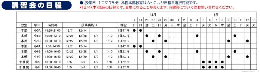 _新札幌教室の冬期講習会は1/4(日)まで申込が可能です。