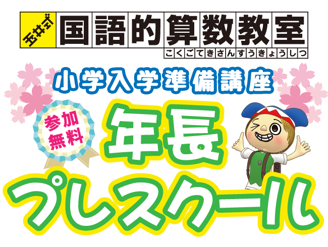 年長(新小1)のお子さまと保護者さまを対象に、小学入学準備講座として「玉井式国語的算数教室」のプレスクールを開講しています。