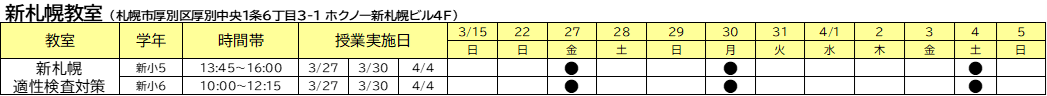 ▶ 新札幌教室 適性検査対策コース 春期講習会 時間割
