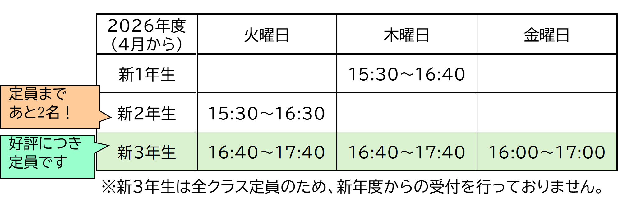【通常授業 案内】 2026年度 西28丁目教室