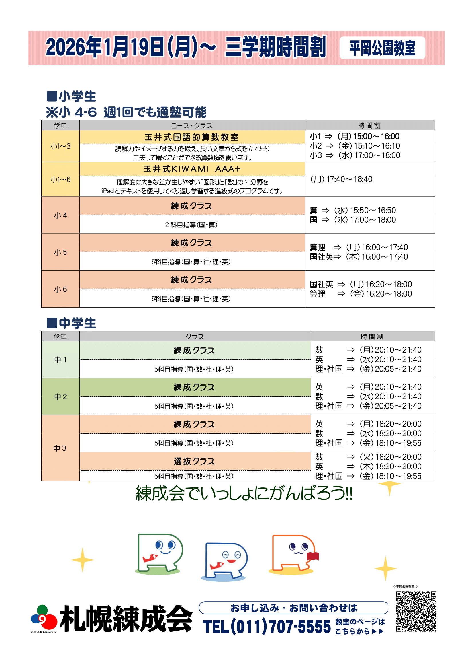 札幌練成会 平岡公園教室からのお知らせ