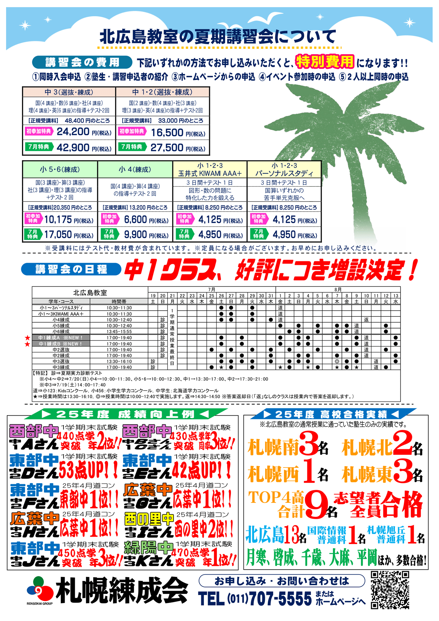 みなさんこんにちは、札幌練成会 北広島教室の青柳です。