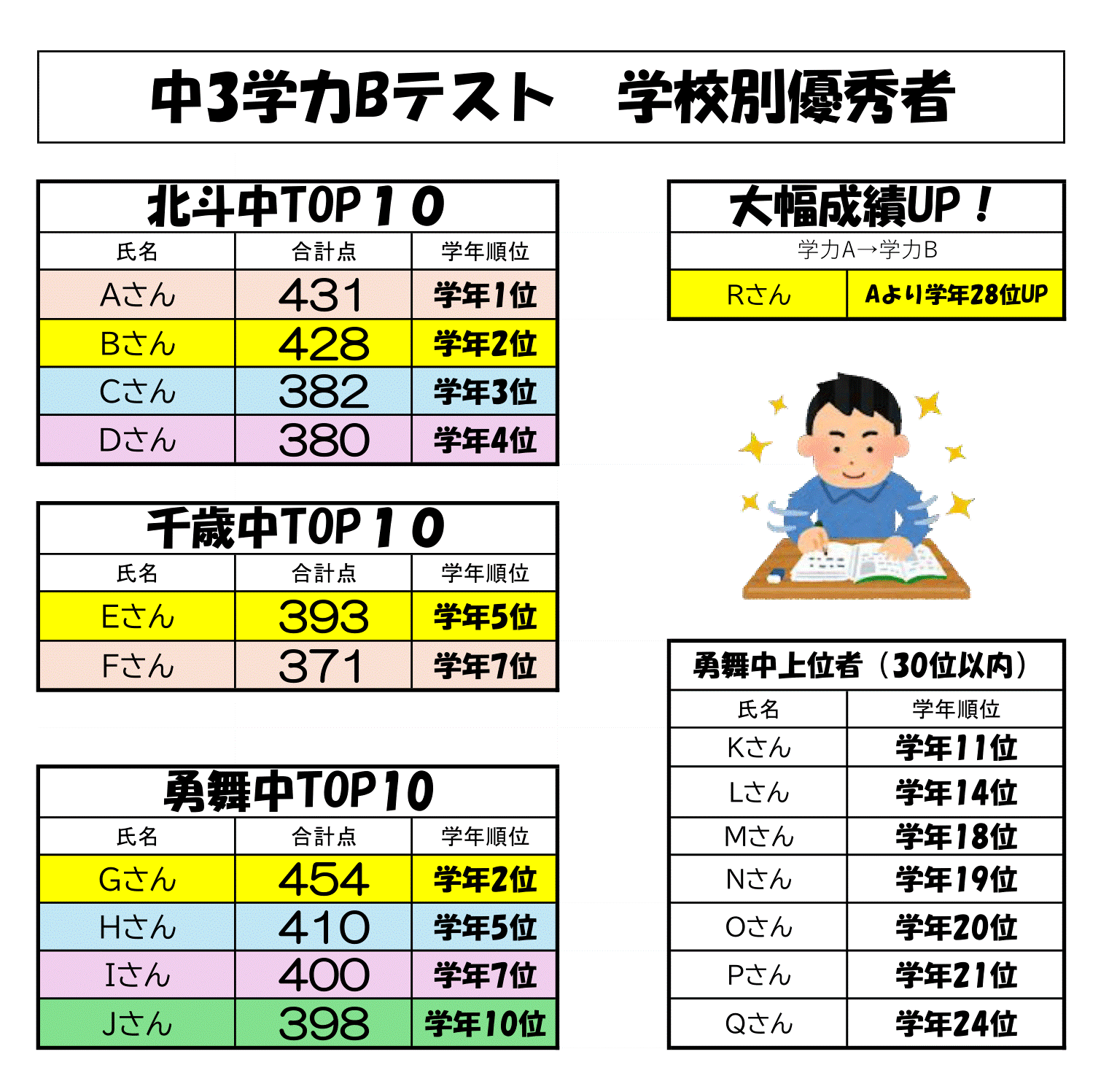 ​学力Aに続き、学力Bの結果(塾生)をお知らせします。