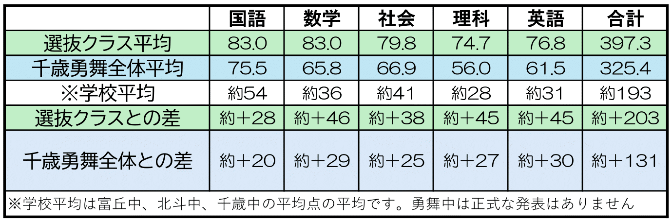 ​中2以下の皆さんは下記の学校平均を参考にしてください。