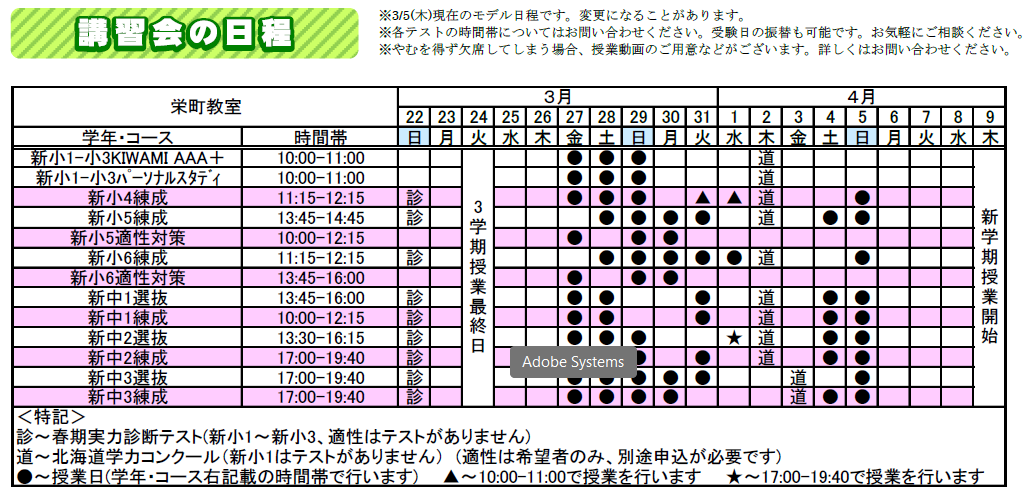 ◆ 4月9日スタートの新年度時間割はこちらから