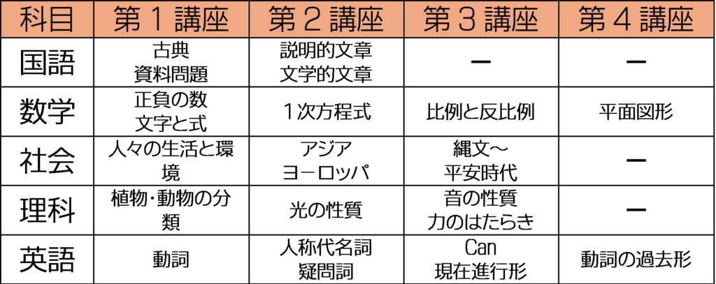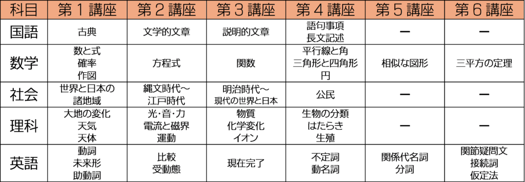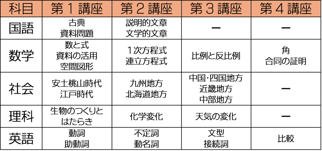 さて、話はかわりまして、冬期講習会の中学部門の授業内容についてお知らせいたします。