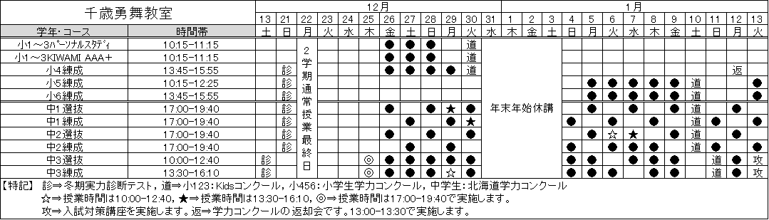 冬期講習会生受付中! 12/6(土)早期割引締切です。(千歳勇舞教室)