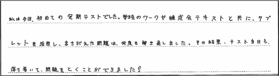 本日は、テスト結果のお知らせと一緒に、一部生徒たちの実際の声をお伝えしていきます。