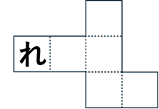 この立方体をひらいたとき、それぞれの文字はどこに書いてありますか。