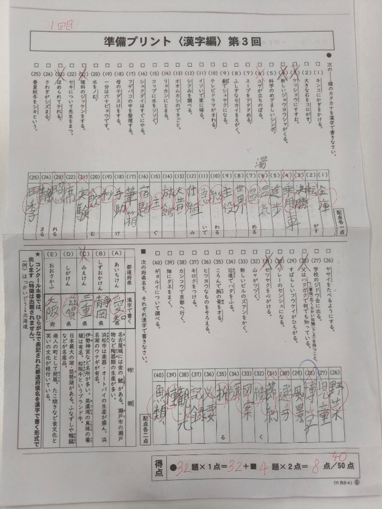 練成会厚別北教室では11/22(土) 漢字・計算コンクールに向けて準備プリントの演習をするよう声掛けし、毎週の授業内で、演習進度をチェックしています!