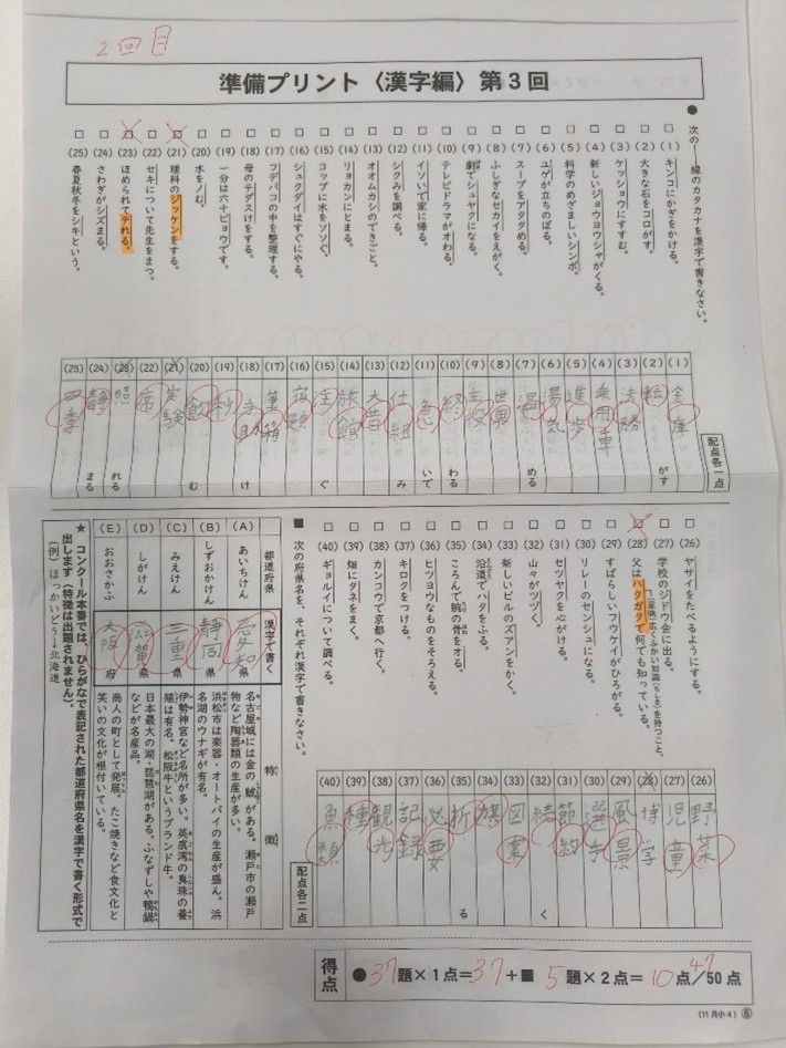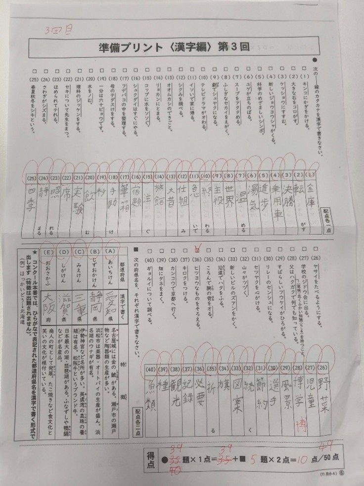 塾生たちは満点を取るべく、ご家庭で準備プリントをコピーし、何度も何度も繰り返し練習してくれているようです!