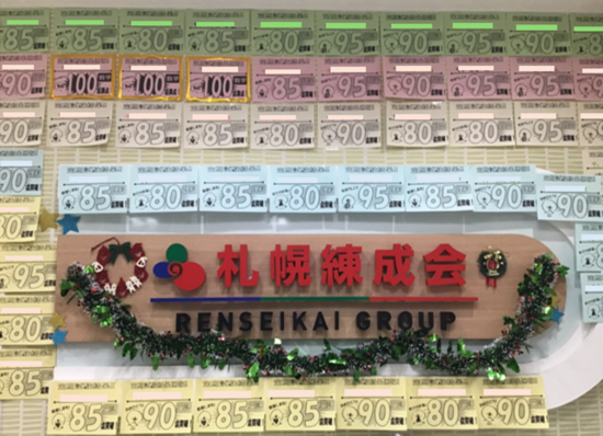 (壁一面の成績優秀者掲示。もう貼りきれません!!)