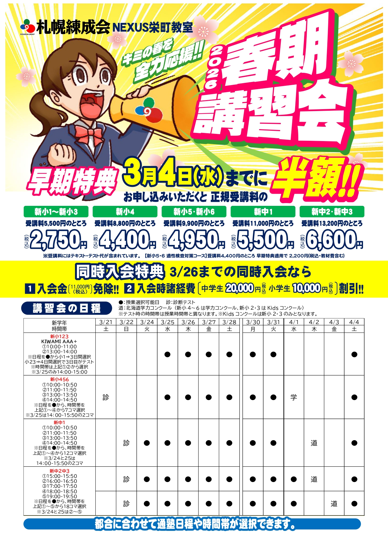 NEXUS栄町教室では日程・時間帯が選択可能です!