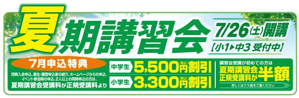 練成会は夏期道コンに向けて、みなさんのやる気UPと学力サポートを宣言します!