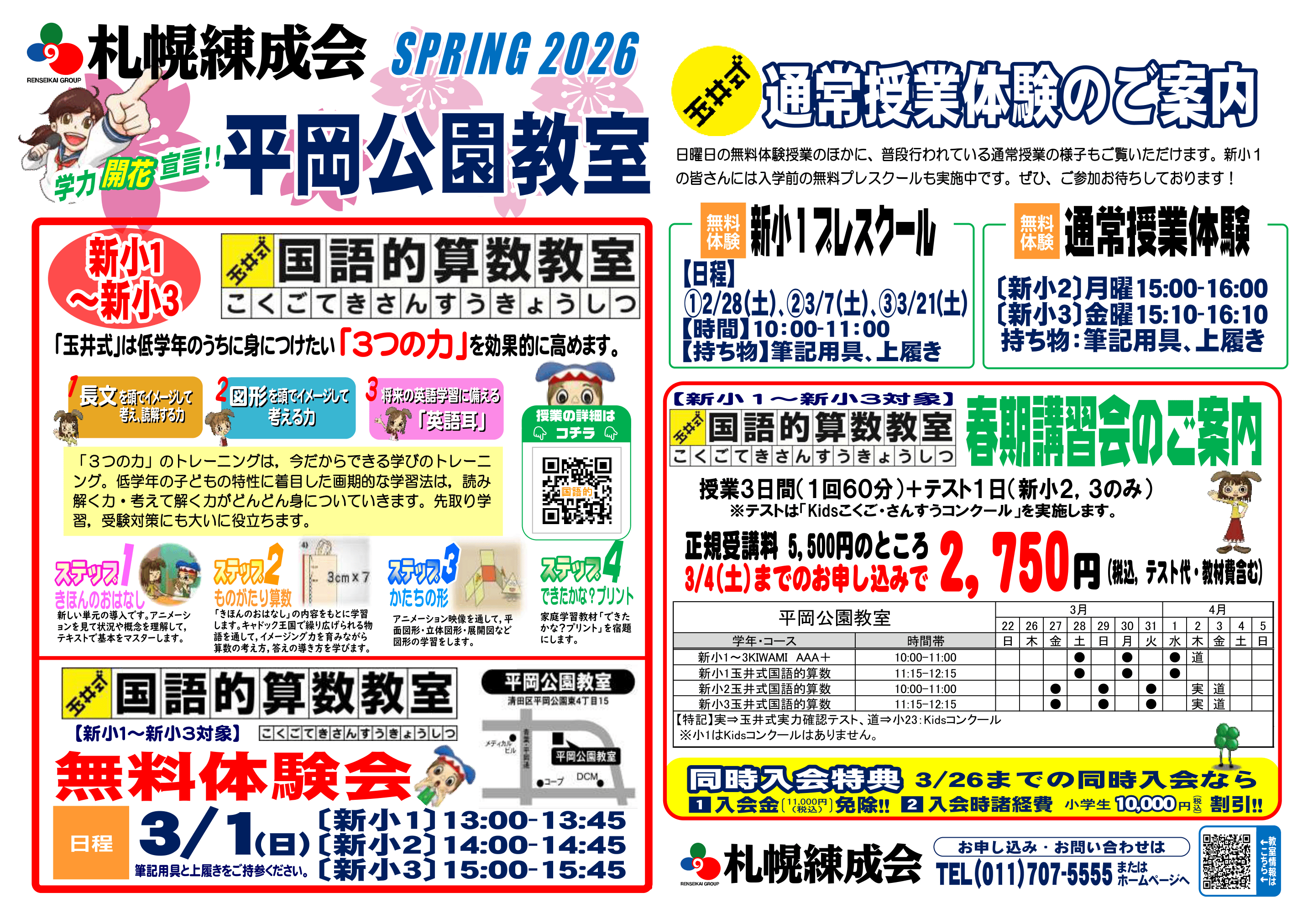 新小1からも充実の授業 → 玉井式親子体験会(平岡公園教室)