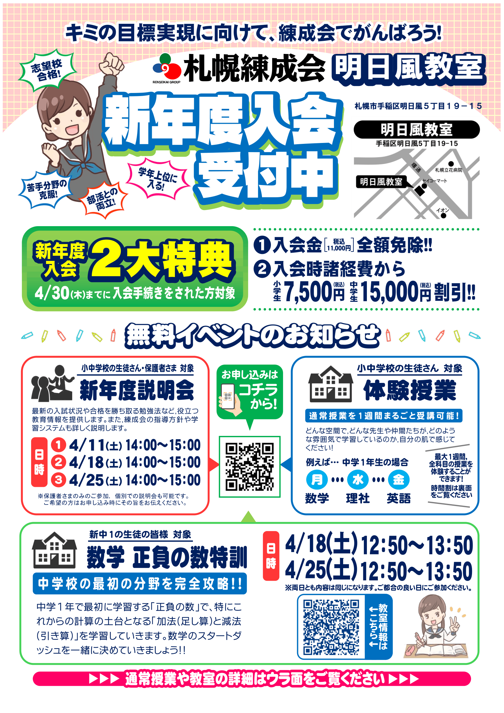 春、練成会でスタートを切ろう! ~新学期通常授業のご案内~(明日風教室)