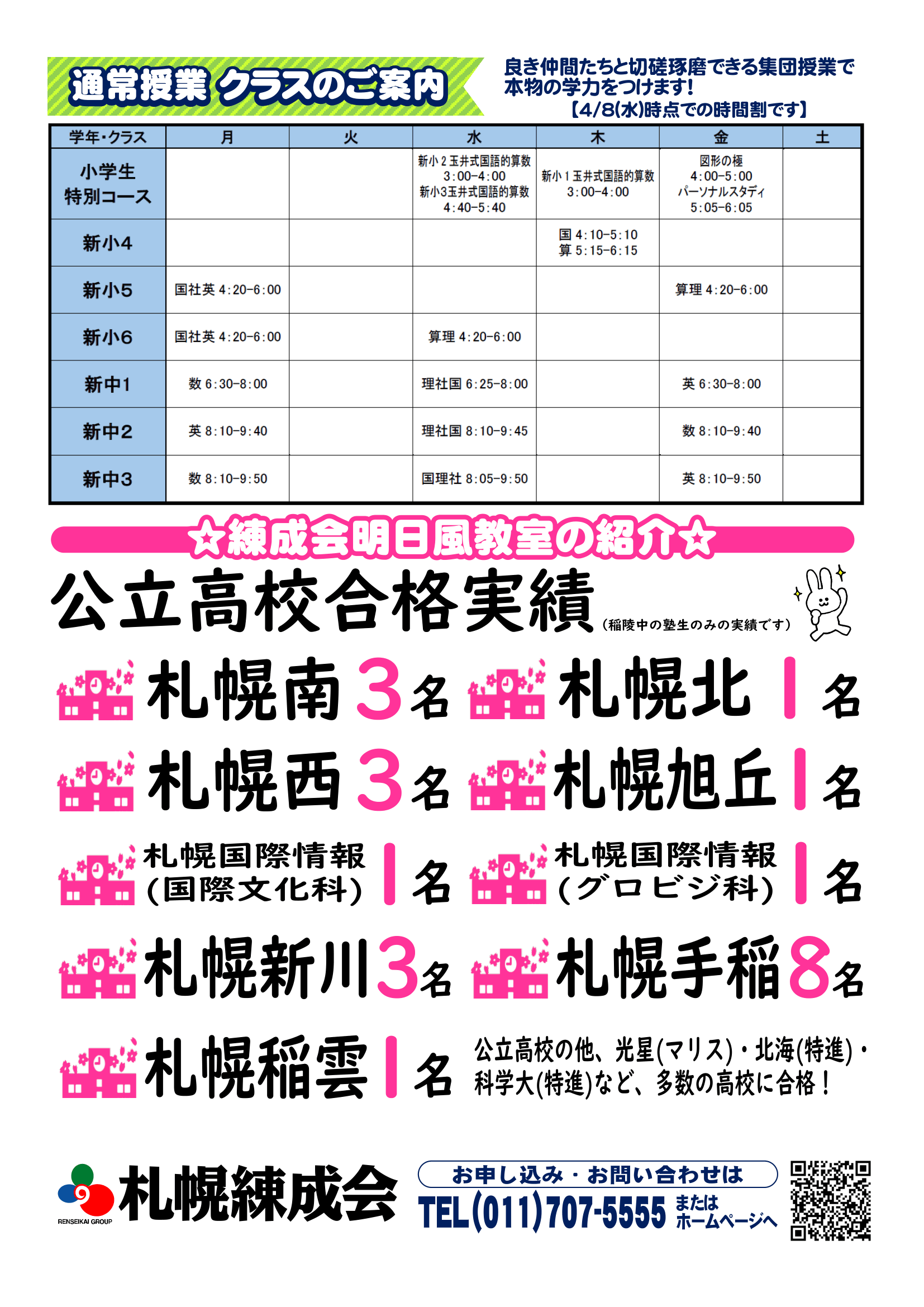 札幌練成会 明日風教室からのお知らせ
