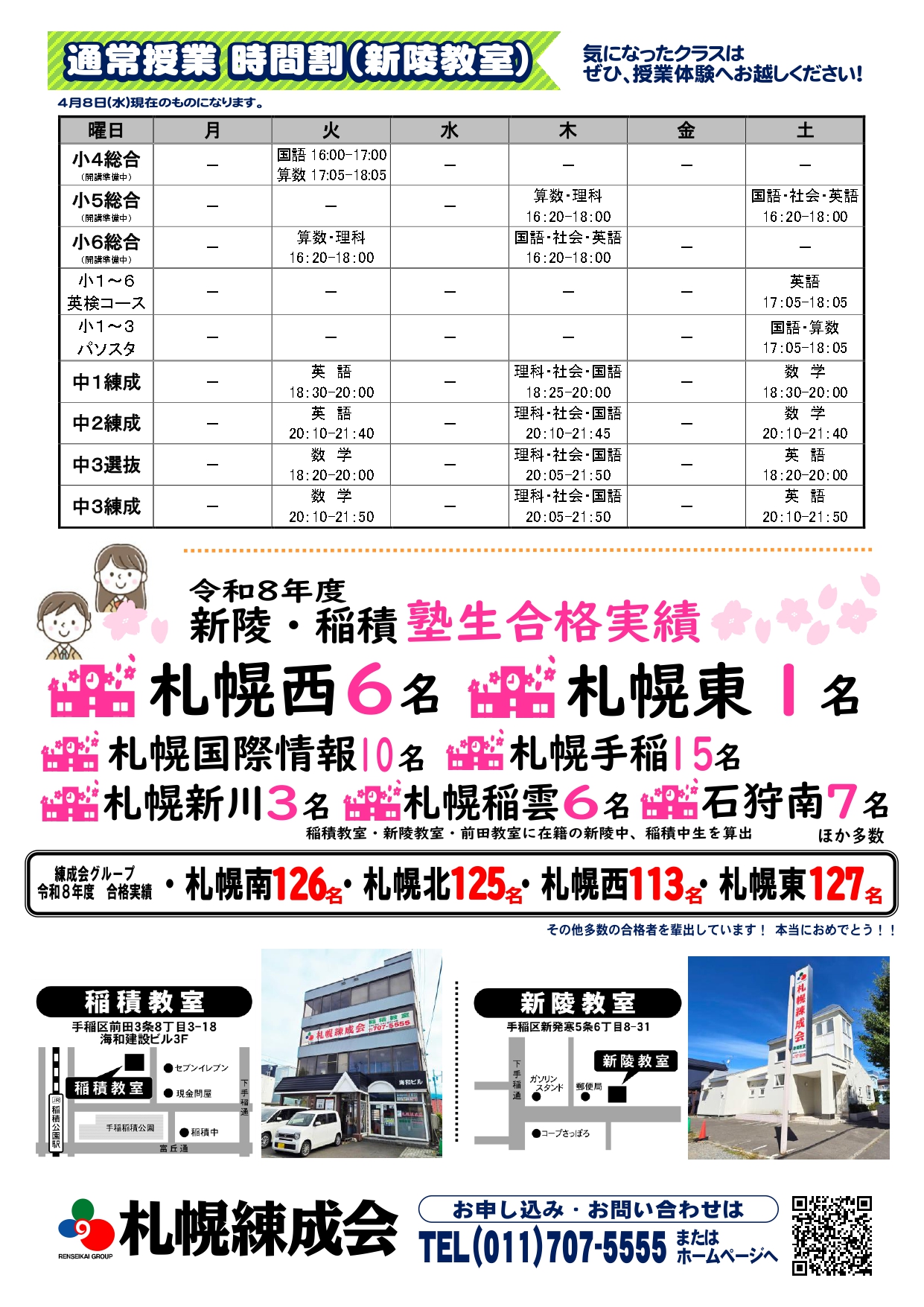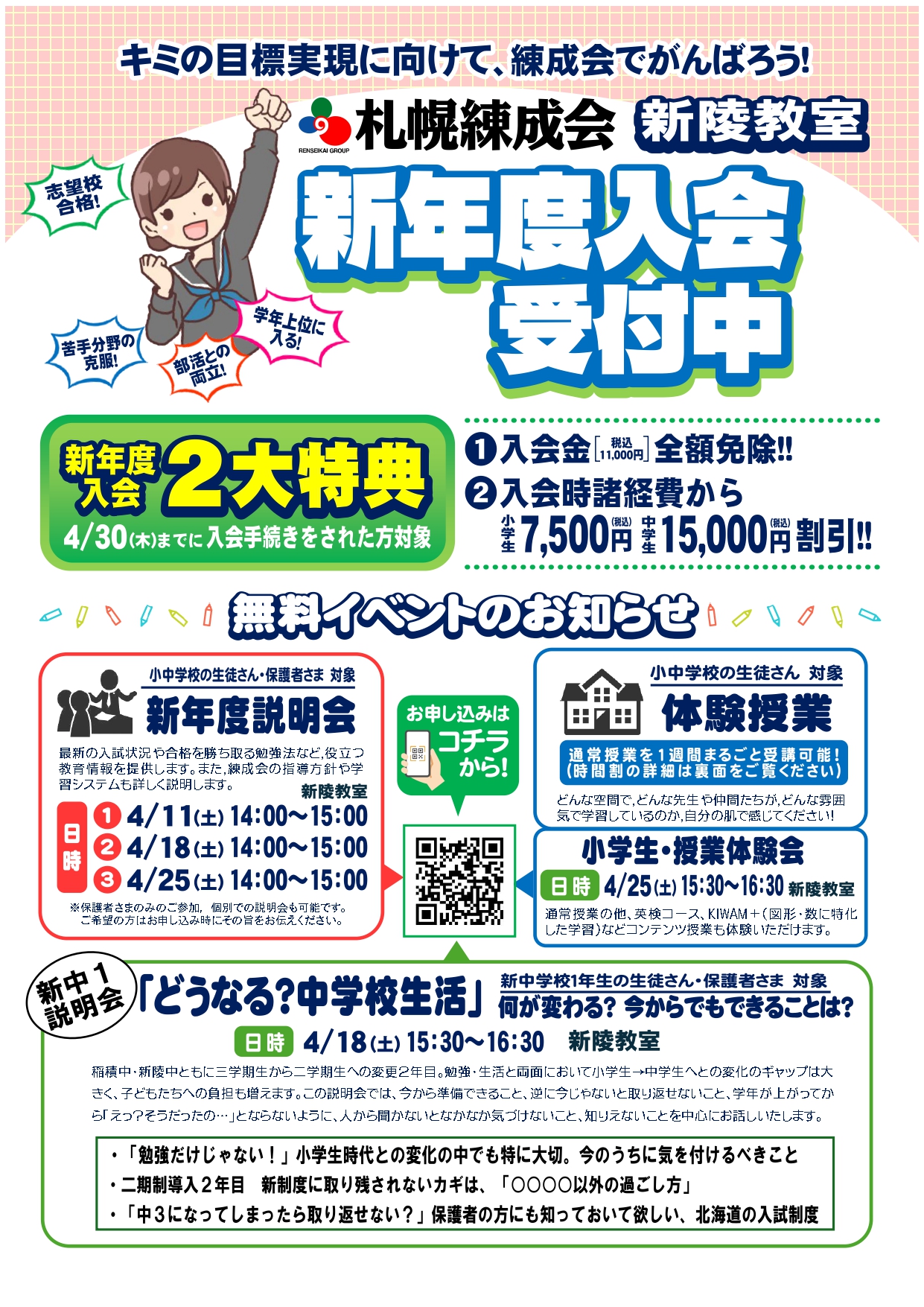 春、練成会でスタートを切ろう! ~新学期通常授業のご案内~(新陵教室)