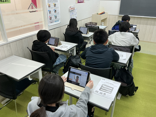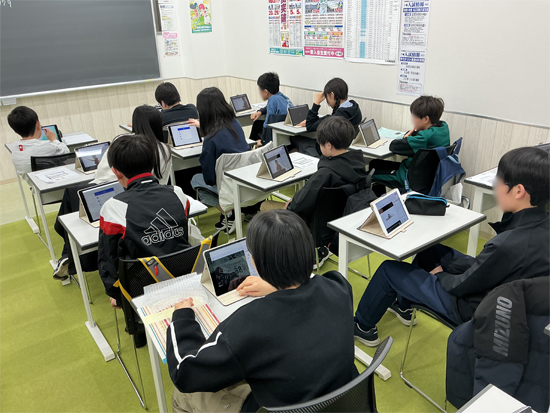 練成会オリジナルコンテンツが搭載されたタブレットですが、生徒たちはドキドキしなら、そして楽しく操作してくれました。