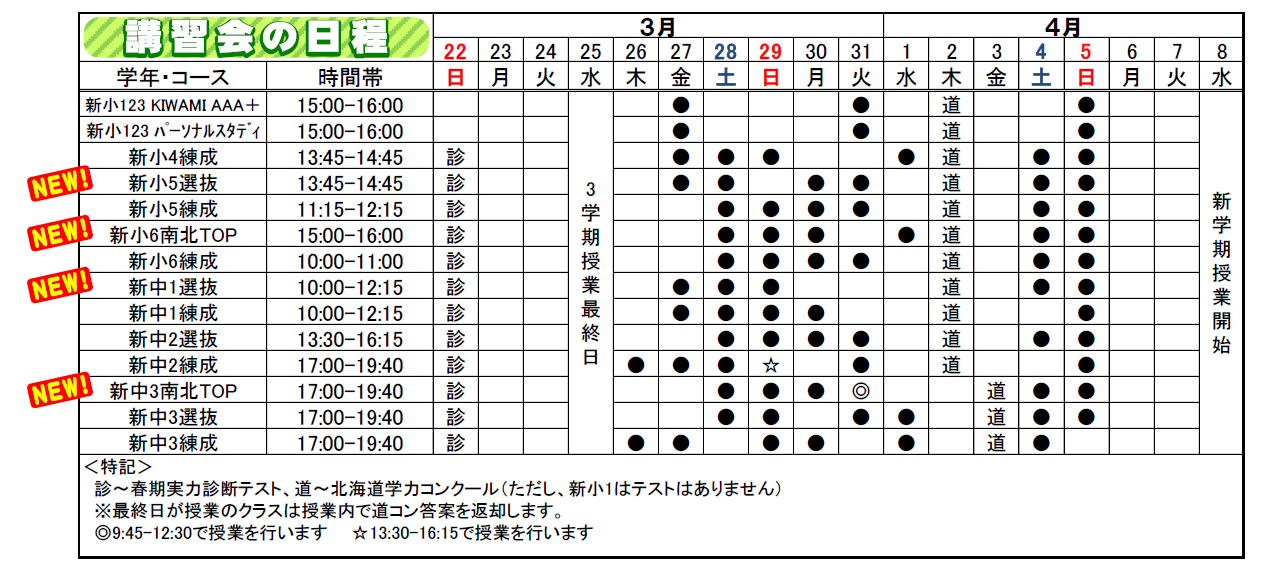 札幌練成会 光星教室からのお知らせ