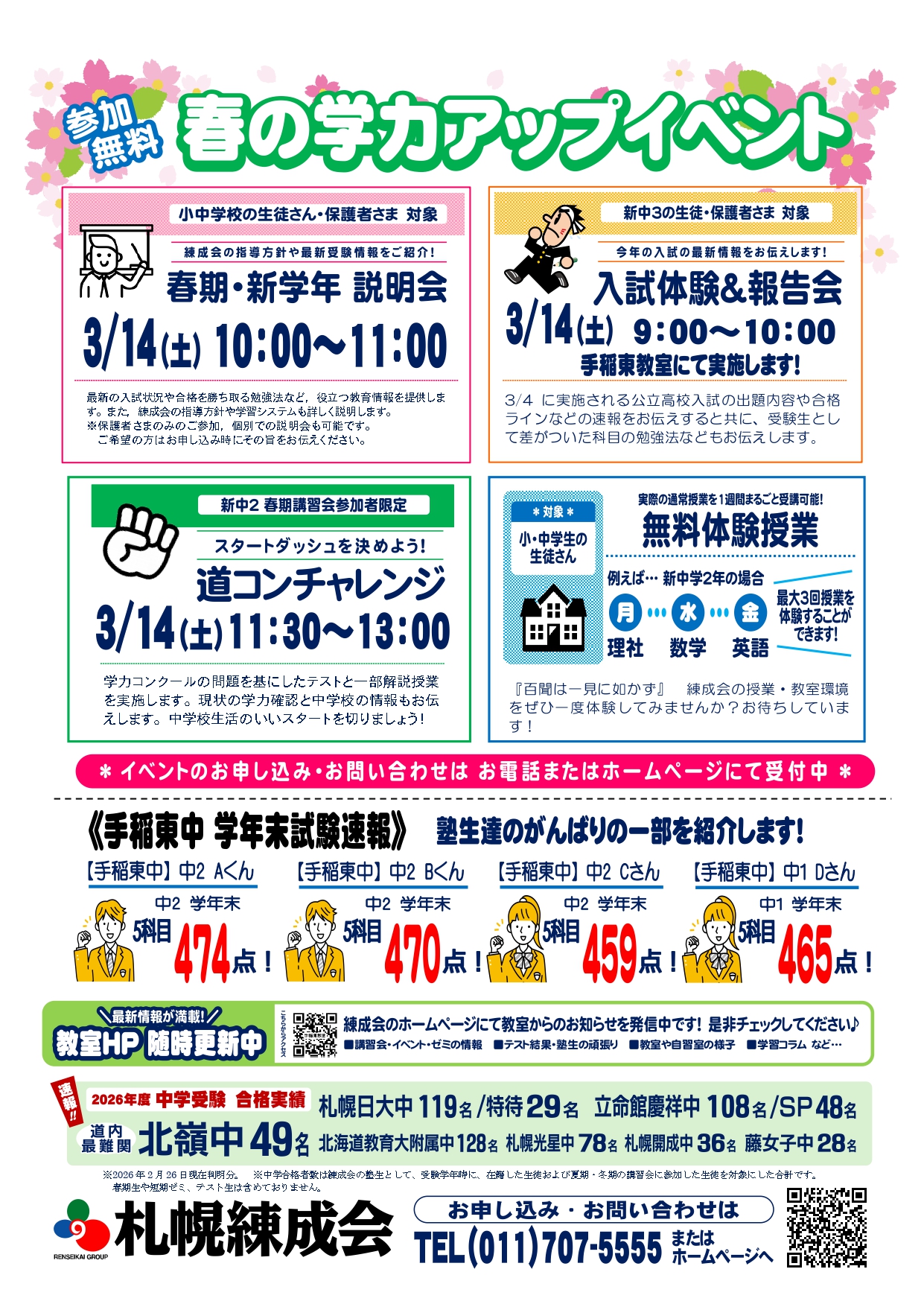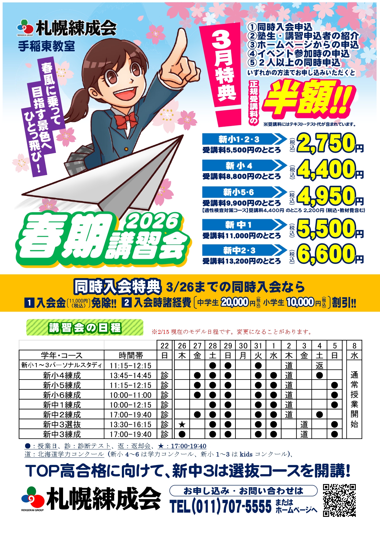 春期講習会開始間近!イベントのご案内(手稲東教室)