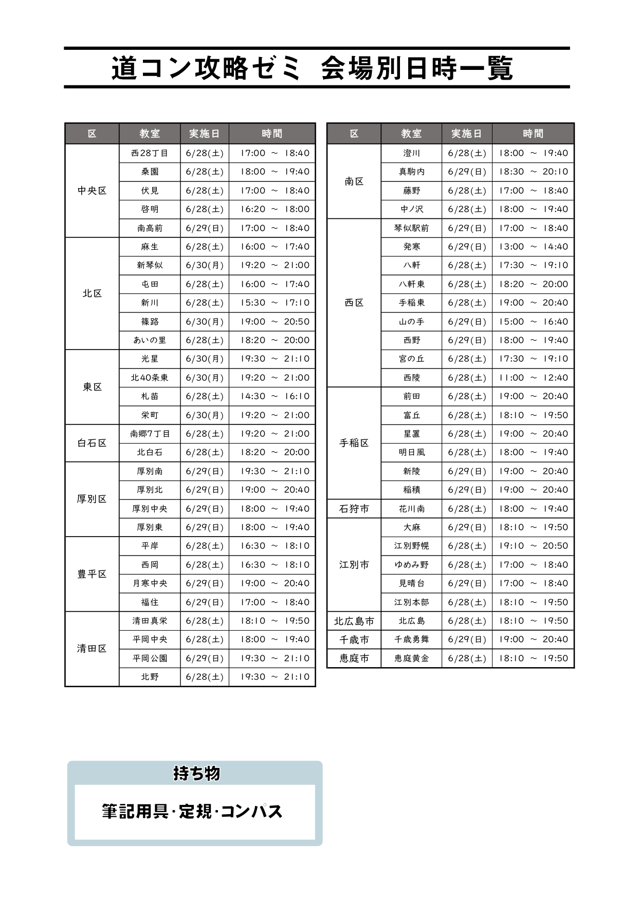 道コン攻略ゼミ(中2) 6月28日(土) 19:00~20:40