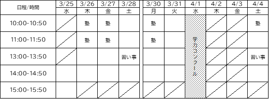 ネクサスの春期講習会は通塾日、時間帯を選ぶことができます。