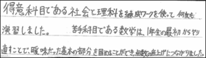 今回は3名からのコメントを紹介しましたが、まだまだ成績UP、学年上位者がいますので、次回以降の投稿も楽しみにしていてください♪